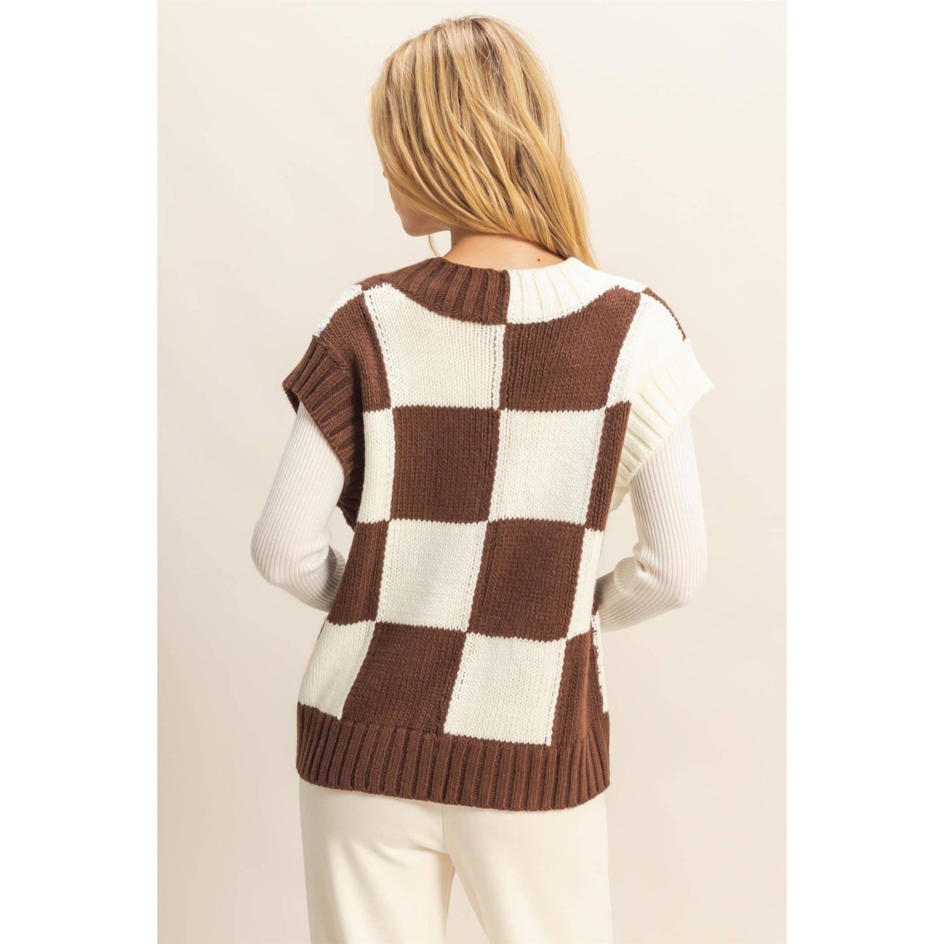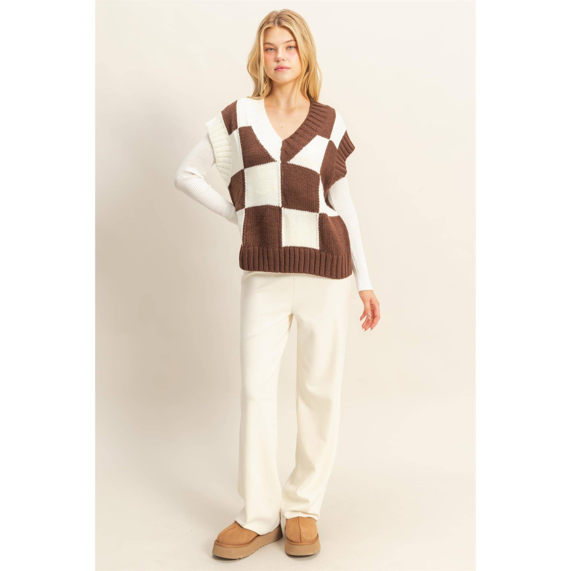 Step Into A Visual Delight With Our Checkered Knit Vest, A Blend Of Classic Pattern And Modern Silhouette That Speaks To Timeless Elegance And Effortless Comfort. This Vest Showcases An Attractive Checkered Design, Making It A Versatile Piece For Your Wardrobe. Its Deep V-Neck And Relaxed Fit Enhance Its Stylish Flair, Perfect For Layering Over Your Favorite Blouses Or Long-Sleeve Tops.