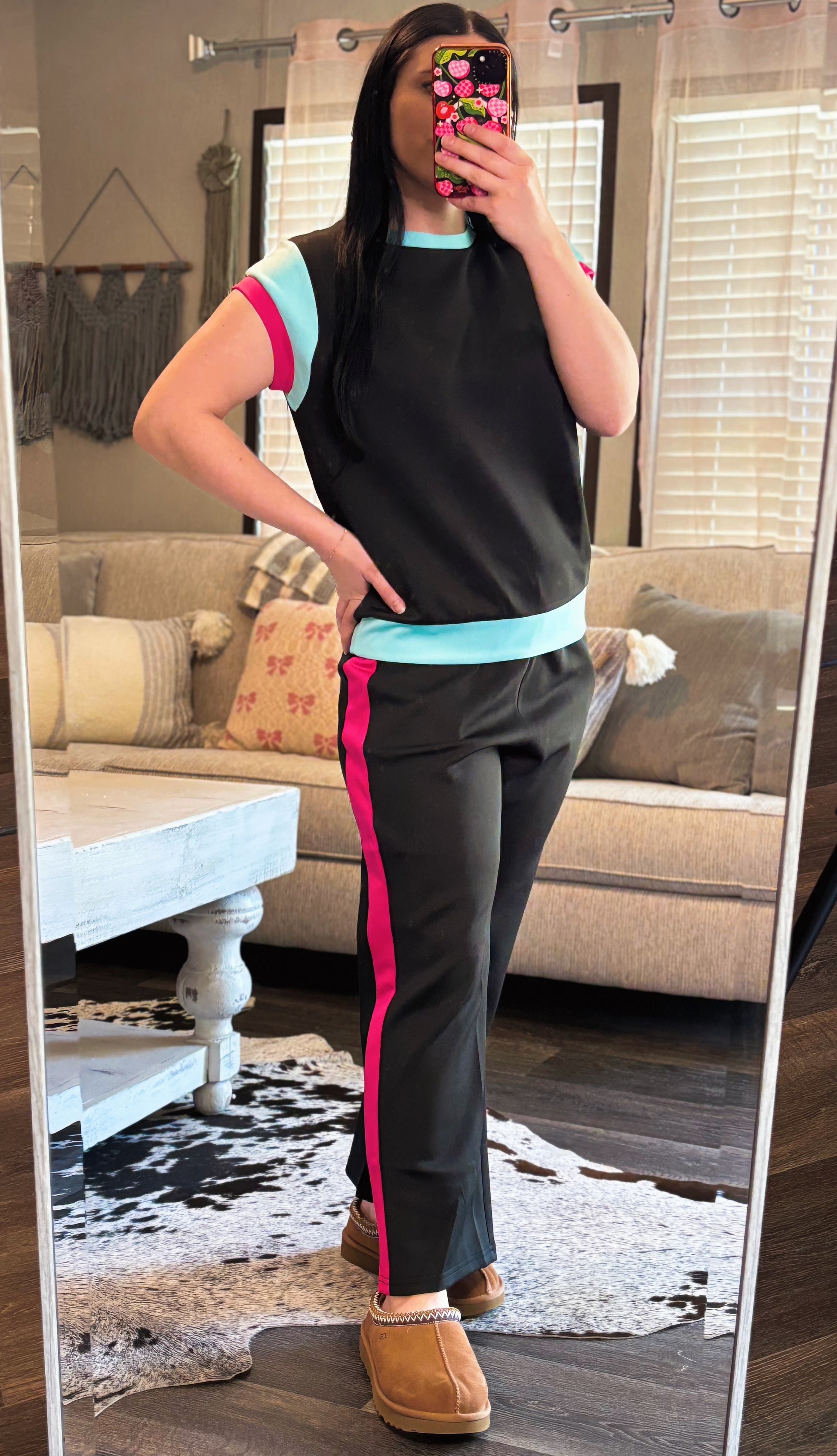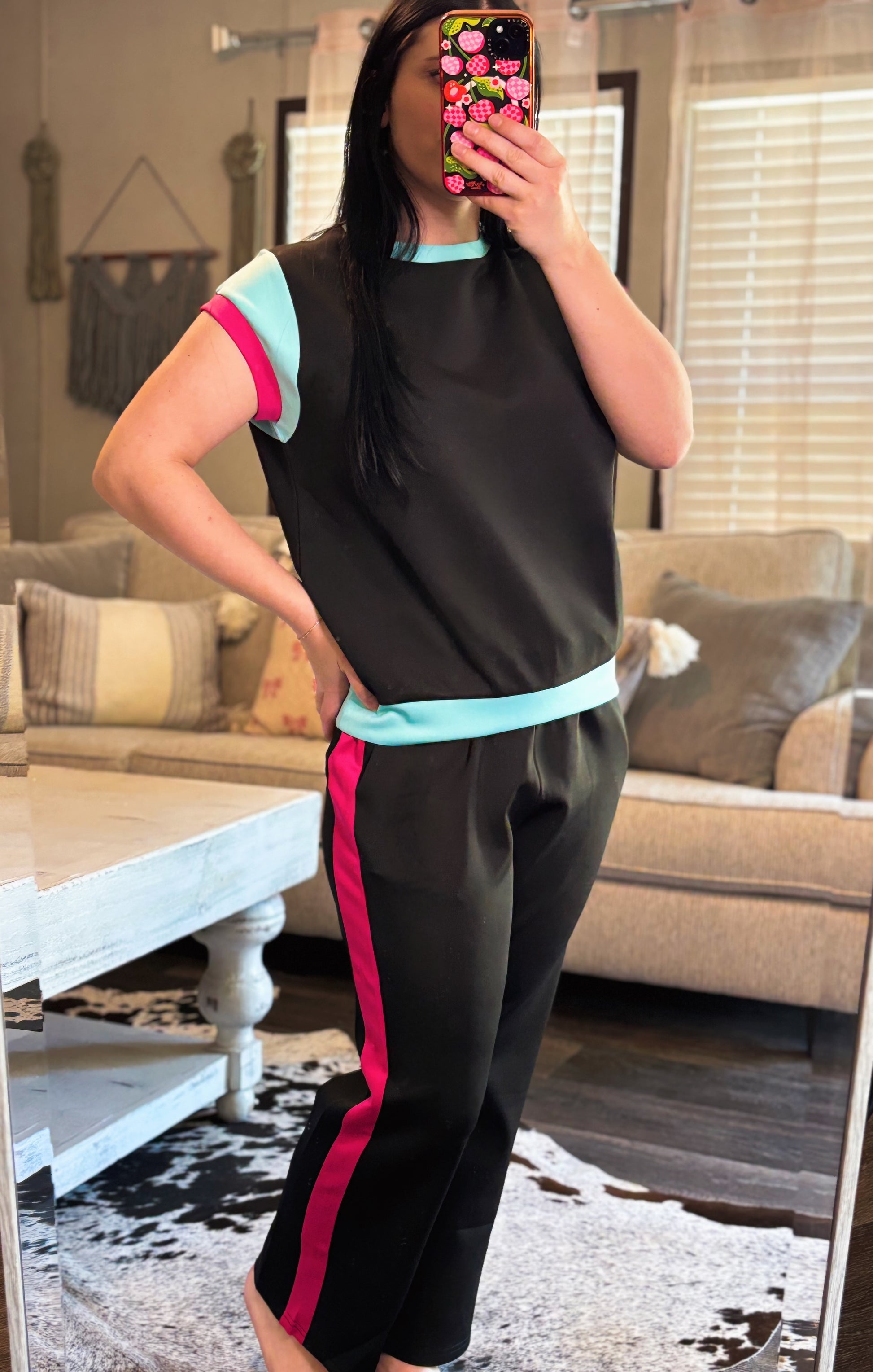 Get ready to move in style with our On The Move Pants Set! Made from a soft material, these color-blocked pants feature an elastic waistband with a drawstring for the perfect fit. With side pockets and a wide leg, these cropped pants are as functional as they are fashionable. Perfect for all your fun activities!