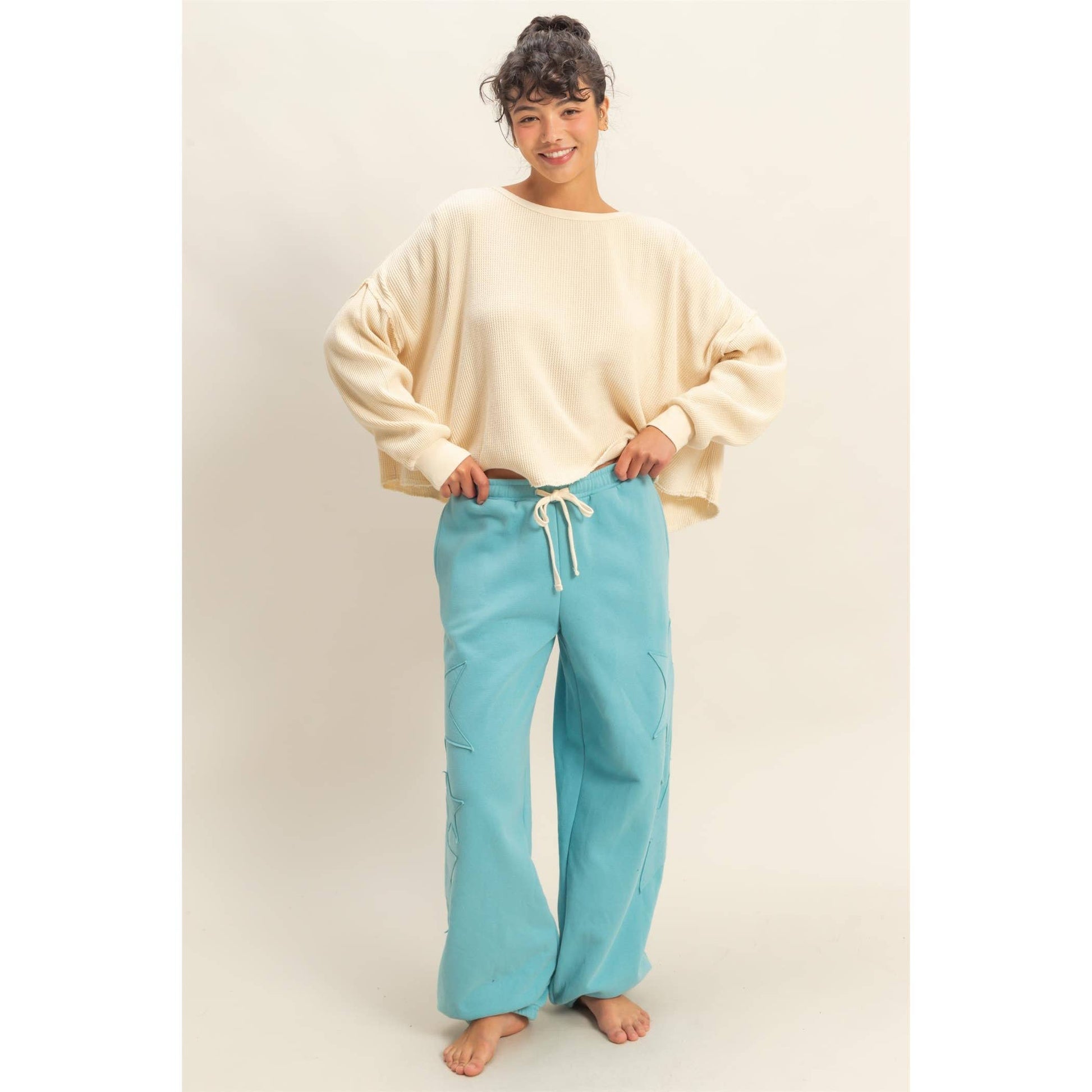 Made Of Soft Fabric, These Relaxed-Fit Sweatpants Feature An Adjustable Waist Drawstring For A Comfortable Fit. The Unique Star Patch Detail Adds A Playful Vibe, Making Them Versatile For A Variety Of Occasions. Perfect For A Leisurely Weekend, Pair Them With A Cozy Sweater And Sneakers For A Comfortable And Stylish Look. Available In A Variety Of Colors.